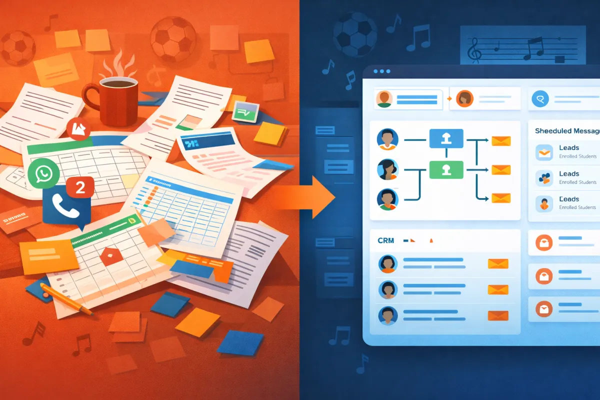 Recordatorios de pagos, renovaciones y seguimiento a alumnos inactivos.